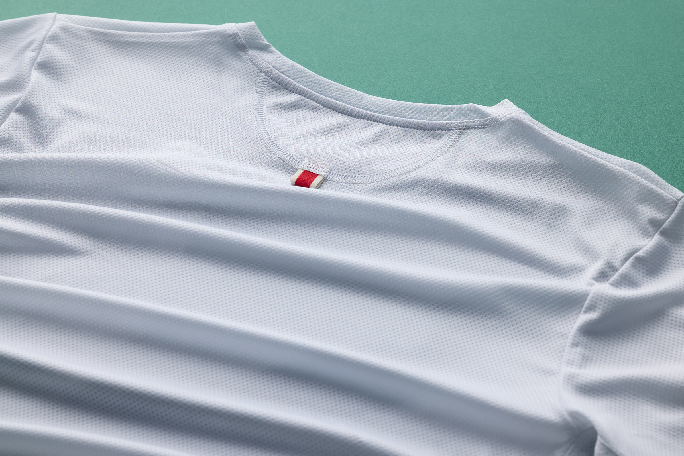 The tee is made from a lightweight and breathable pin dot mesh, offering maximal ventilation. The crewneck is a technical tee, offering a more slim-fitting silhouette that stays out of the way when you perform on race day.