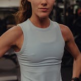 Inspired by classic gym wear, this ribbed tank is crafted for movement with a high-neck and cutaway armholes