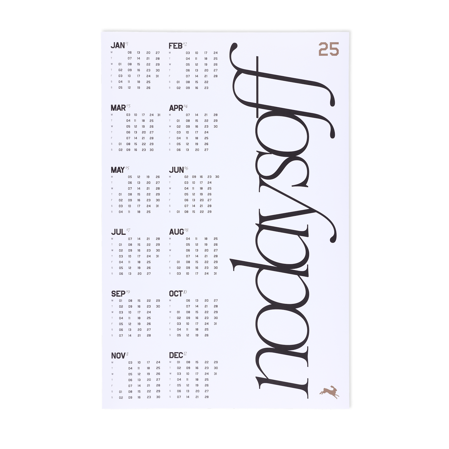 The idea for No Days Off came in 2014 as a tangible way to build habits and recommit to running in the year ahead. Over a decade later, the story remains as we commit to improving every day–perhaps not just with the miles, but with goal setting and intention to fuel the fire for a year of progress to come. The 2025 calendar is a tool to track your training, a symbol of dedication evidenced as you cross off each passing day.