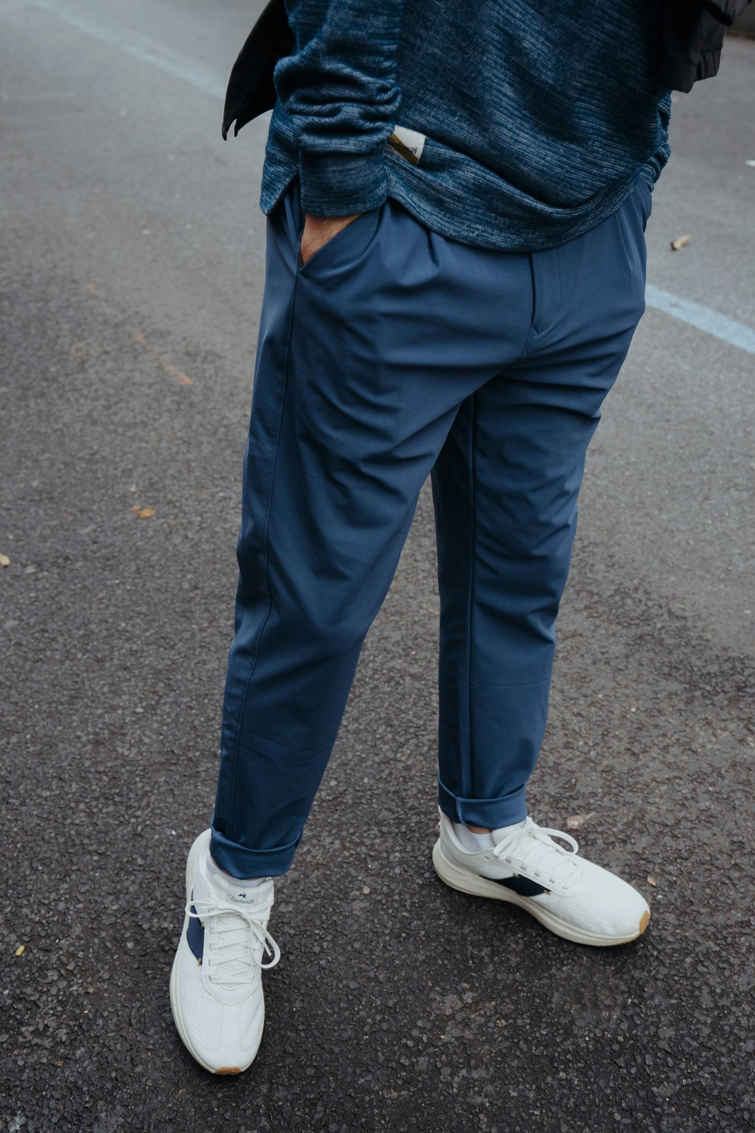 While these pants may fit and feel like a jogger, we combined classic tailoring details - from a hook and bar waistband and perfect pleats - with nods to performance like the reflective stripe on the cuffs.