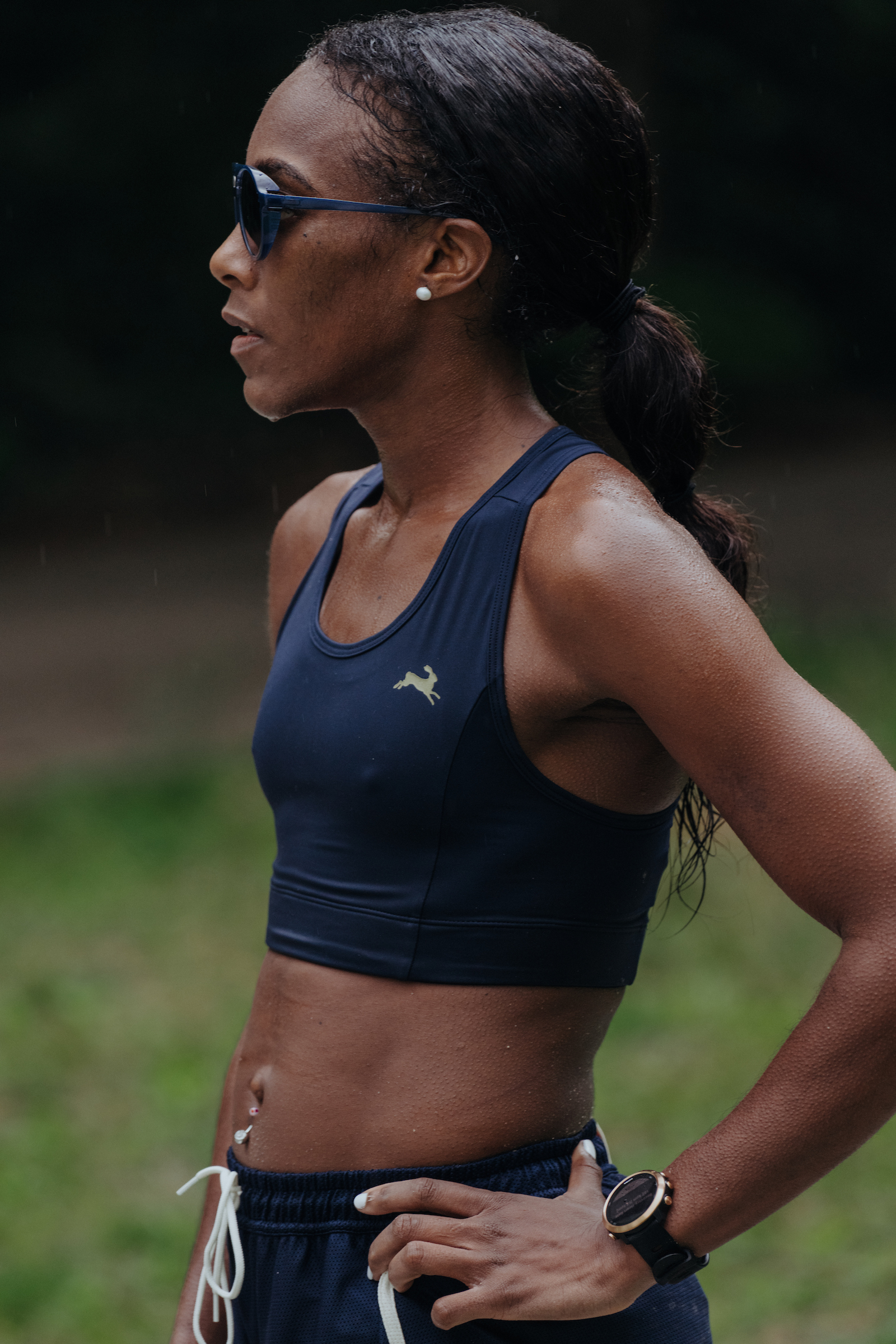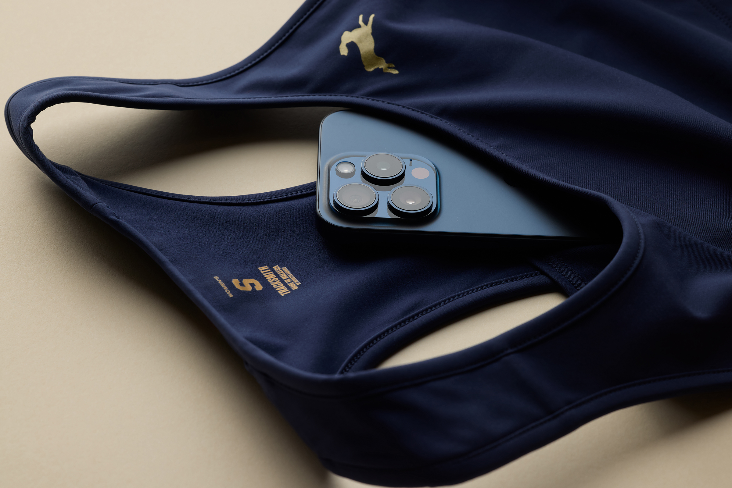 A streamlined bra for distance running offering low- to medium-impact support and a pocket for storage.